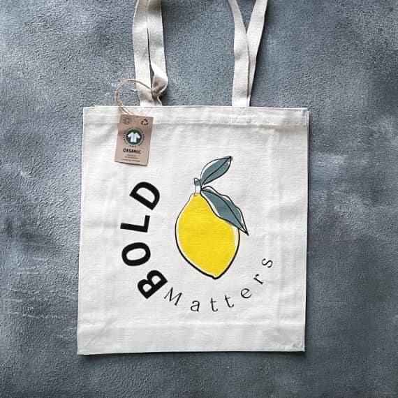 - Choice of Natural or Black Organic Cotton Tote Bags.