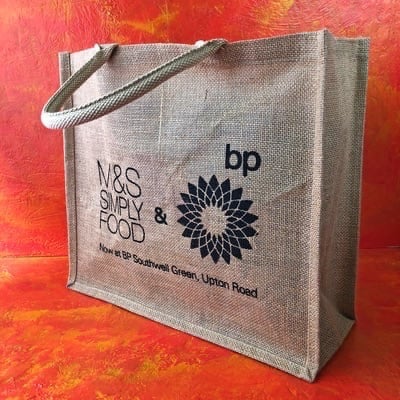 Eco-friendly reusable Natural Jute Bags are overprinted on pre-made stock Jute Tote Bags, use our online Express Print portal to upload and preview your artwork directly onto your chosen bag prior to ordering.